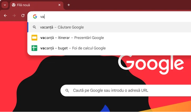 Conectează-te cu Contul Google pentru a accesa Google Drive. Cu Chrome, poți să accesezi rapid fișiere direct din bara de căutare și să lucrezi la ele și offline.